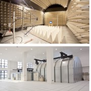 消声室是一种完全吸收用于各种电磁兼容测试的电磁波反射的房间。它们也隔绝了外部噪声源。这两个方面的结合意味着它们模拟了一个安静的无限维度的开放空间,这在外部影响会给出错误的结果时是有用的。射频暗室通常用于容纳进行天线辐射模式、电磁兼容性(EMC)和雷达截面测量的设备。EMC室可以在方便的位置进行快速高效的EMC辐射测试,不受周围电磁环境的干扰。