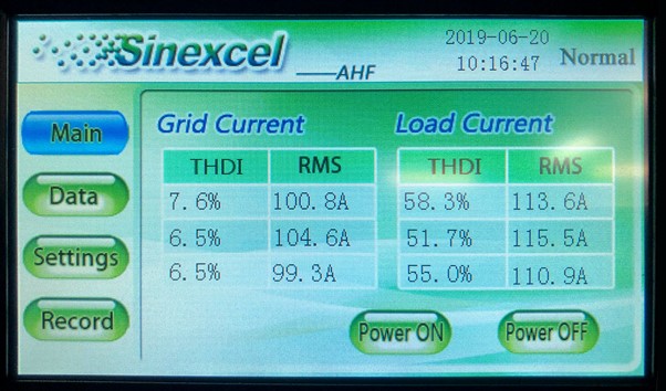 结果是即时的,实施的解决方案的表现高于和超出预期。Sinexcel AHF提供的THDI减少约55%至约7%(请参阅屏幕截图),并且电网也有减少。THDV降至低于2%,从而提供令人印象深刻的结果,并消除随机MCCB和RCD跳闸的风险,对SCADA或BMS系统的干扰,并遵守当地谐波限制。
